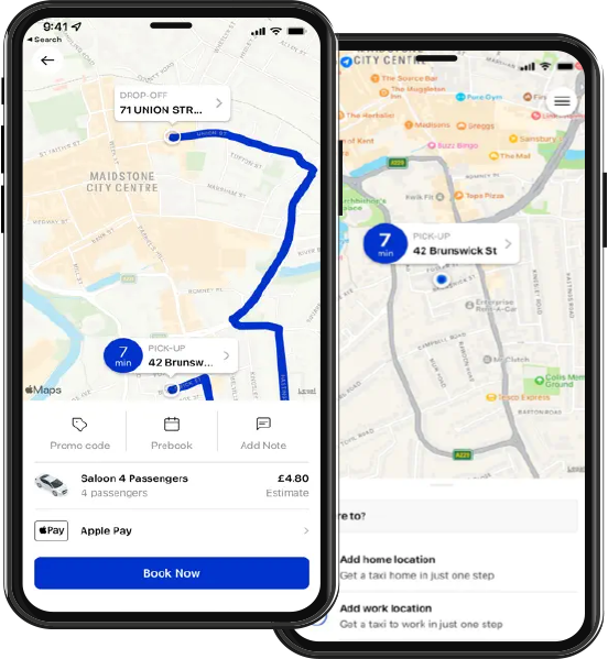 Operating 24/7, we’re always available to provide reliable local transportation throughout Maidstone. Whether it’s your daily commute, a night out, or a quick run to the shops, our modern fleet is ready when you are. We take pride in offering a safe, friendly, and affordable service that puts our customers first, every time.